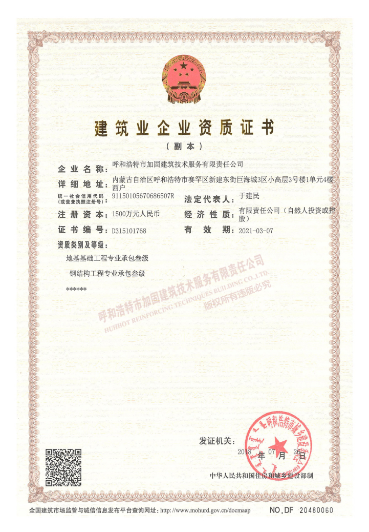 建筑業(yè)企業(yè)資質(zhì)證書副本