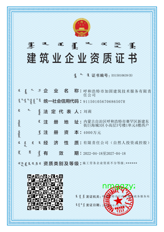 建筑業企業資質證書